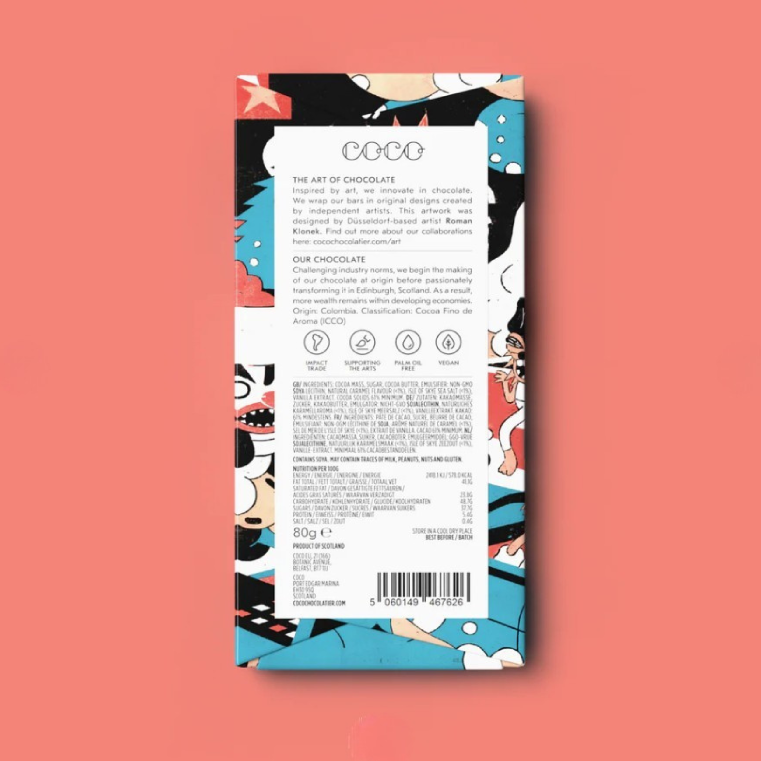 Caramelo salado, un clásico moderno y un auténtico capricho. Utilizamos escamas de sal marina recogidas en las aguas puras que rodean la isla de Skye para realzar el dulzor y potenciar su sabor.